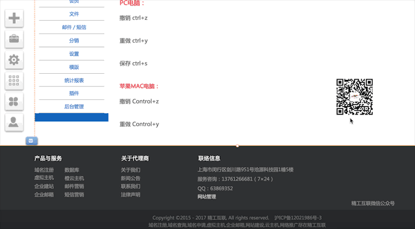 页脚(即页面底部信息)是指建站系统下面有一些信息,通常建站时使用底部来展示公司名称、备案信息和相关版权信息。如: