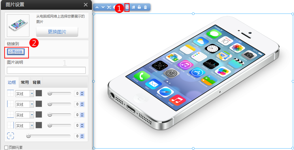 1) 依次 点击图片-工具栏中的“属性”按键-》设置链接
