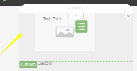 自由布局:拖动自由布局到可视化编辑区域,之后,用户可以拖动图片,文本和导航这三个插件到自由布局内,如下图,这三个插件在自由布局里面可以叠加并且可以改变大小和随意移动