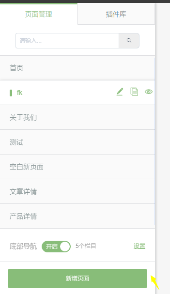 新增页面:点击下方的新增页面,可以新增空白页面,页面没有层级关系。