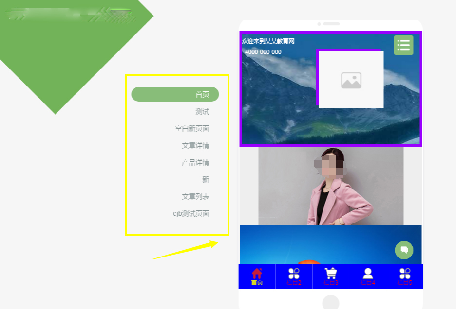 底部导航:是一个全局设置,用户可以设置导航的链接页面,下面详述
