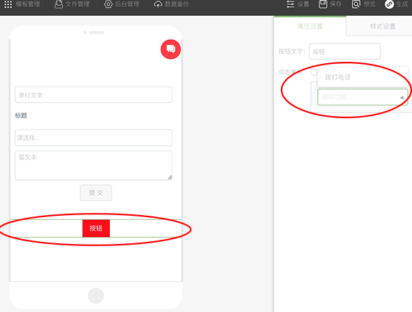 ②.属性设置,可以修改按钮文字,以及设置按钮链接