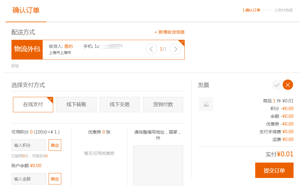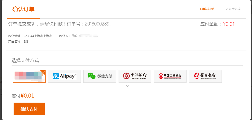 当选择在线支付的情形下,会先提交订单,再选择具体的在线支付方式,如下图