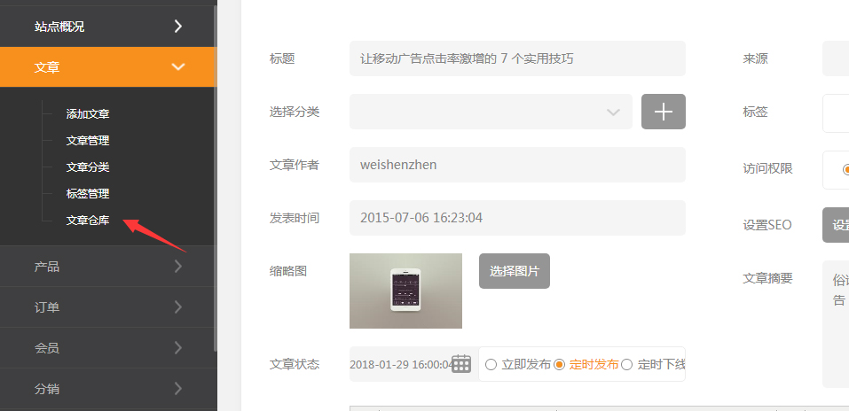 B.并且增加了文章仓库,下线和隐藏的文章都将在这里显示