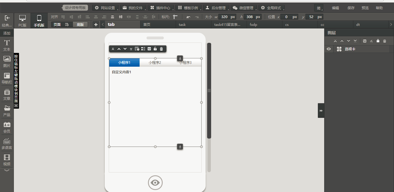 ②.设计师和手机端操作方式与PC端一致,不做赘述,如图所示:
