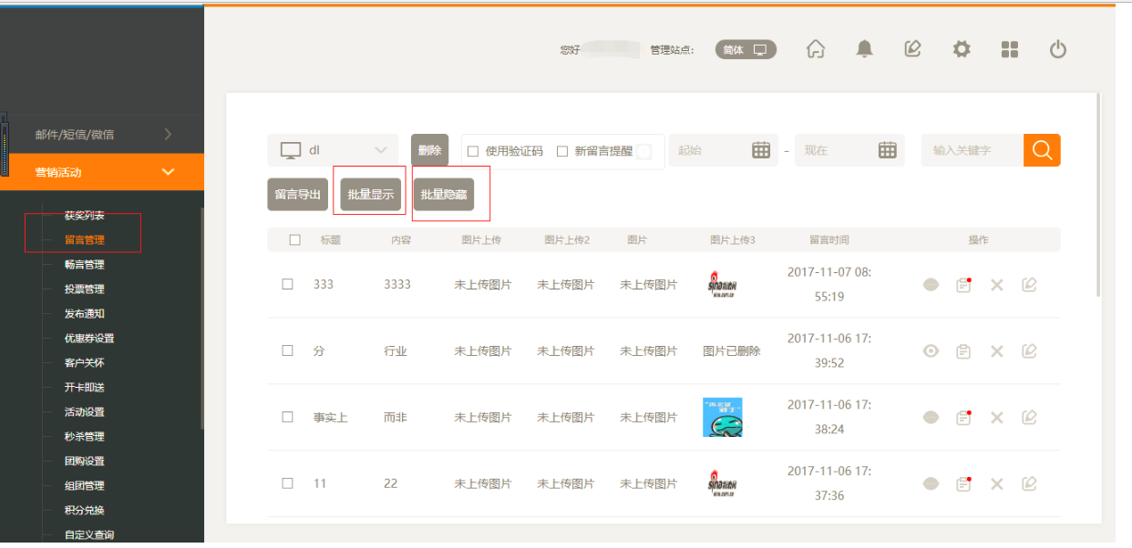 二.后台新增留言管理批量显示和批量隐藏功能(基础版、标准版、营销版)