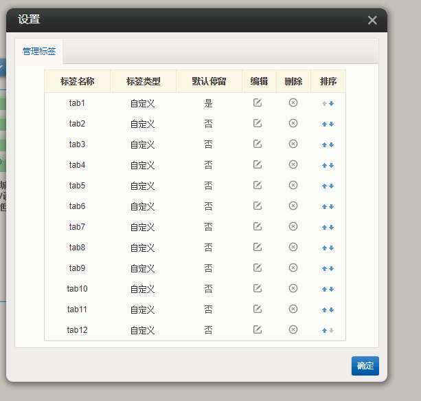 中,选项卡标签,多可以添加8个标签名称,现在优化为多可添加为12个标签名称,以PC版为例,如图所示: