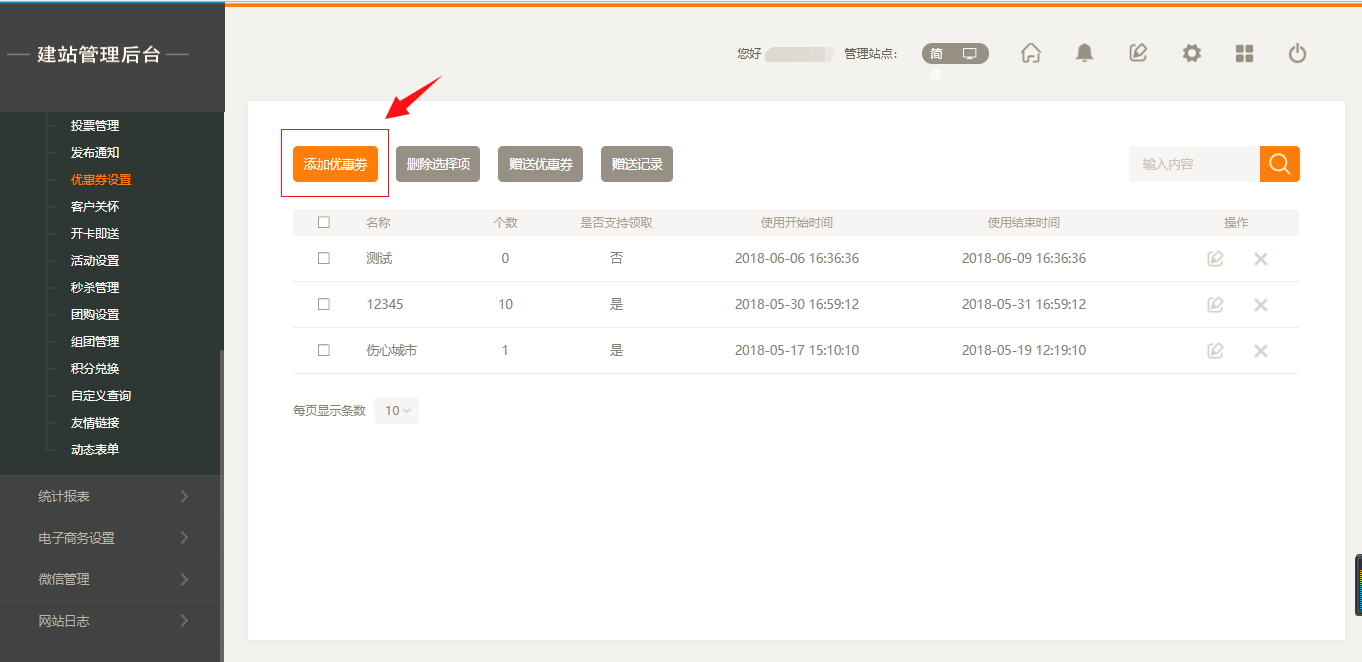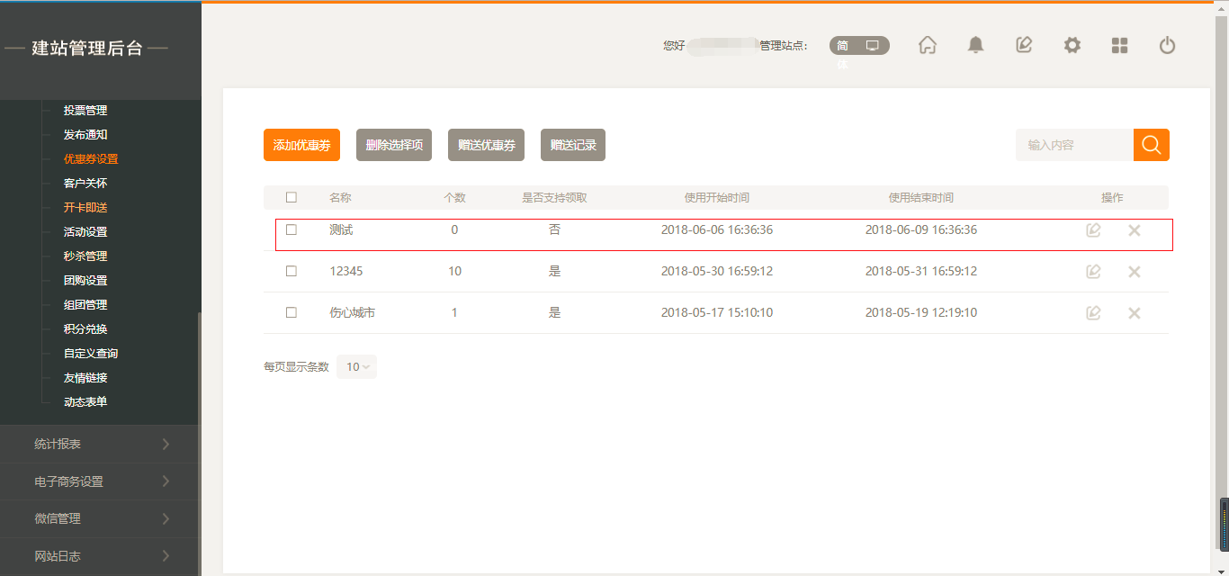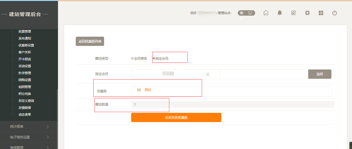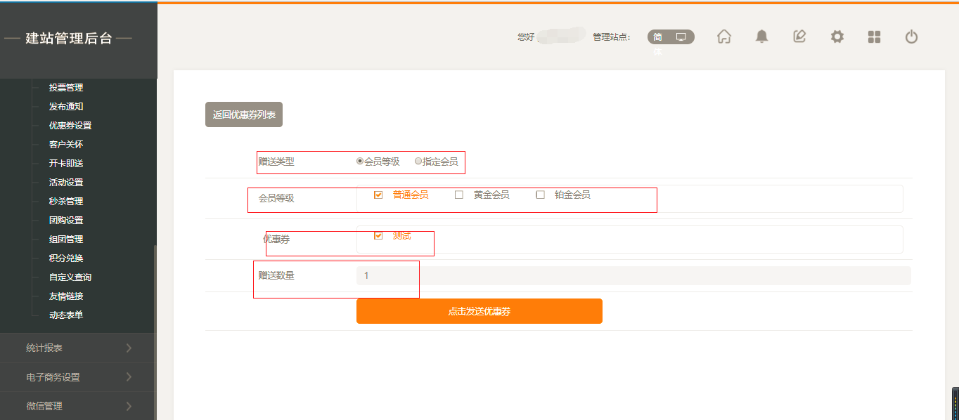 一.精工建站与小程序优惠券新增赠送功能(建站营销版、小程序营销版)