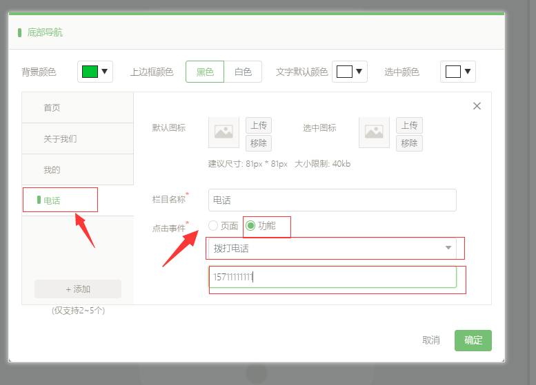 精工建站新功能介绍 更新描述: 1.精工建站会员中心新增注册项查看入口; 2.网站日志中新增文件分类删除日志; 3.精工建站产品列表分页优化; 4. 小程序新增底部导航拨打电话功能 一.精工建站会员中心新增注册项查看入口(PC、手机营销版) 1.在“后台管理”中,点击“会员”-“会员注册项”选择需要用户填写的注册项内容,选择完成之后,当用户将注册信息填写完成之后,在“会员中心”中,可以看到注册的内容,并可以修改注册内容,如图所示: 二.网站日志中新增文件分类删除记录 1.在建站编辑器中,点击“文件”,删除已有的分类,在“后台管理”-“网站日志”-“日志列表”中会有该条删除记录,如图所示: 三.产品列表分页优化(手机营销版、设计师版) 1.以手机版为例,点击“产品插件”-“产品列表”拖入到编辑器中,选择“样式设置”,在“参数设置”中开启“显示分页”,选择需要的分页样式,点击“确定”即可,如图所示: 2.设计师版与手机版操作一致,这里不做赘述。 四.小程序新增底部导航拨打电话功能(标准版、营销版) 1.在编辑器中,点击“底部导航”设置,添加“栏目”名称,将其“点击事件”选择为“功能”-“拨打电话”并同时输入电话号码,点击保存即可,如图所示: