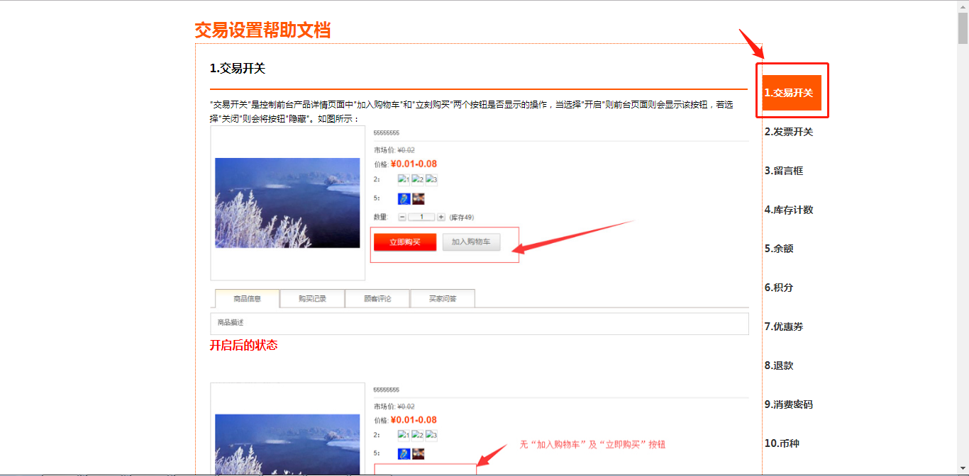 1.建站后台-“电子商务设置”-“交易设置”页面,增加了系统性的帮助文档。如图所示: