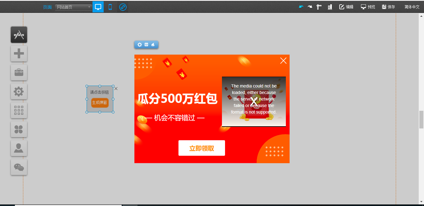 1.在编辑器拖入弹出容器时,在编辑框中,会有一个弹出容器的示例图,以供参考,里面的插件可以进行删除,如图所示: