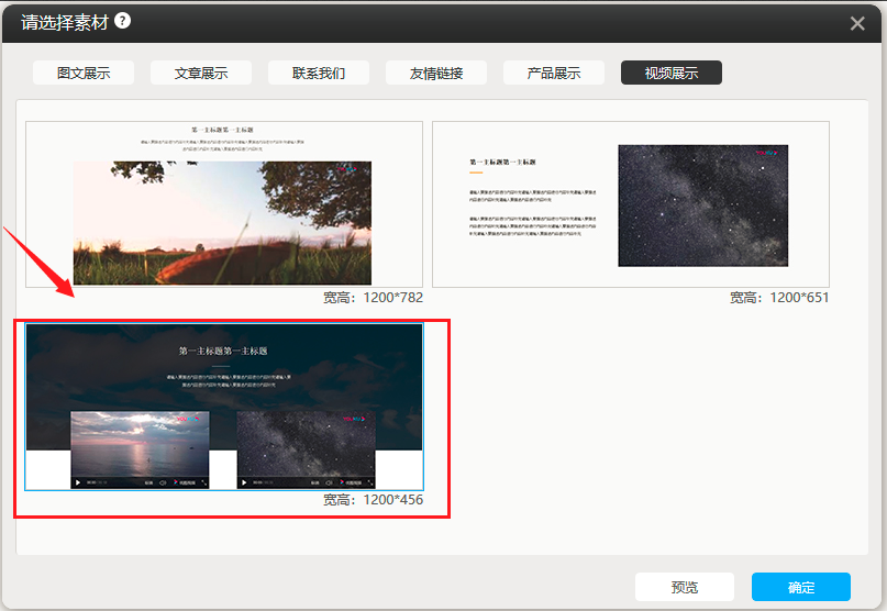 1. 在pc建站,素材模块的视频展示中,新增了一个样式,如图所示: