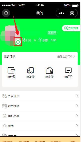 1. 在小程序的个人中心,新增了一个刷新按钮,点击后会获取的微信昵称和头像,如图所示: