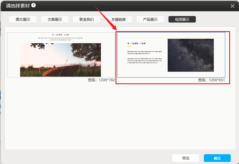 1. 在pc版建站,素材模块的视频展示中,新增了一个样式,如图所示: