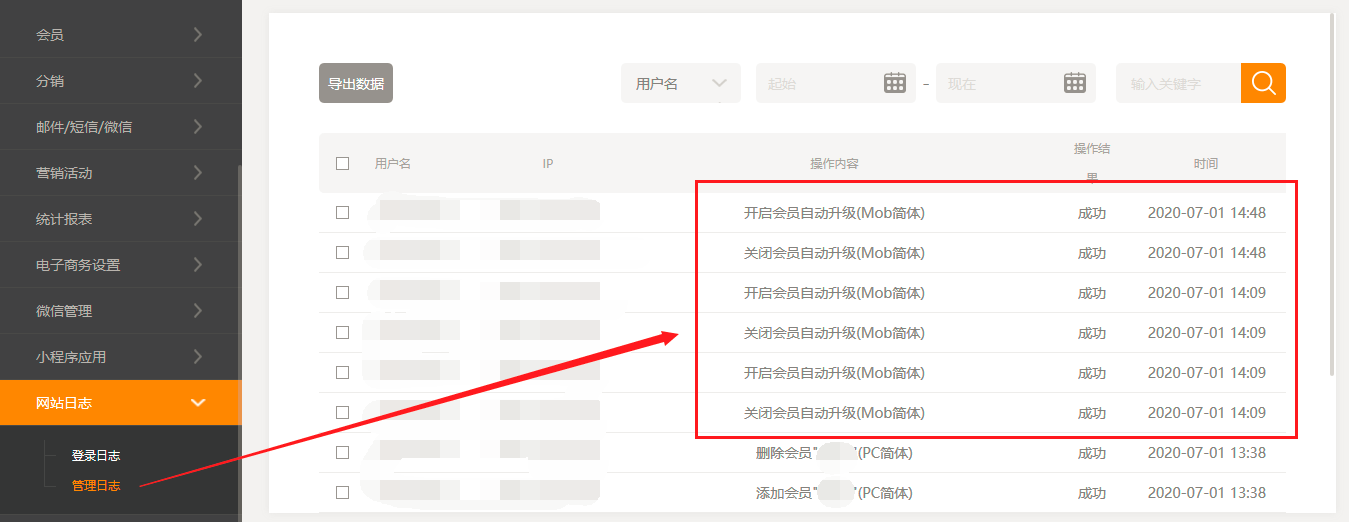 三. 管理日志增加会员升级开关记录(标准版、营销版、版)