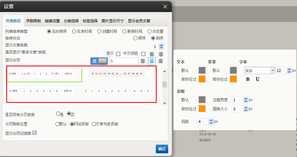 1. 在pc版建站,拖出“文章列表”插件,点击设置,显示分页,在样式中添加了5个新样式,如图所示: