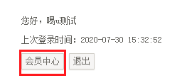 1. 在建站中,拖出“会员”模块,当用户登录后,用户中心改为了“会员中心”,如图所示: