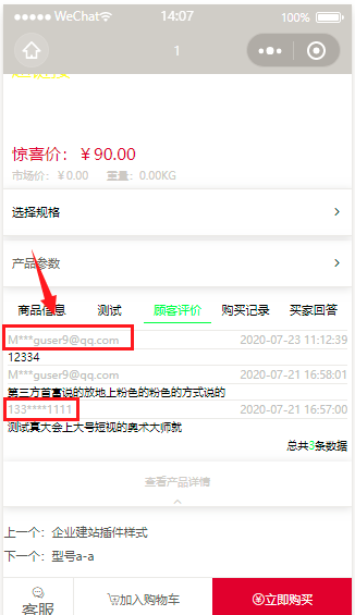 一. 顾客评价中用户名隐藏部分(小程序标准版、营销版)