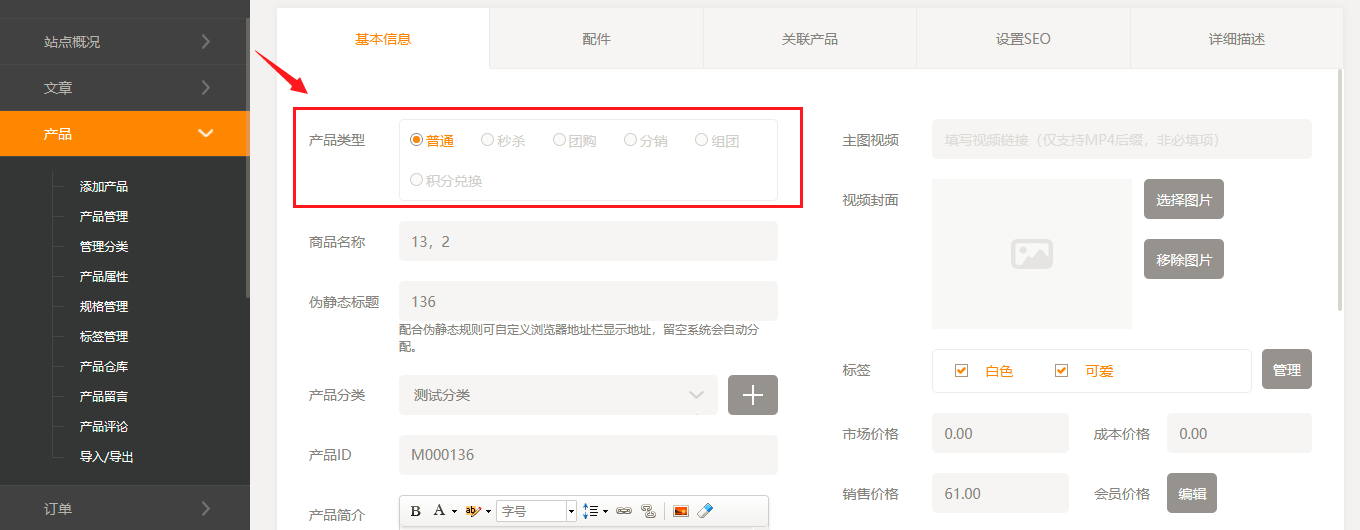 6.产品类型禁止修改;