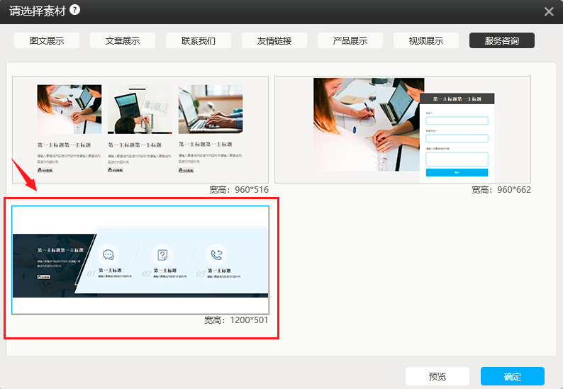 1. 在pc版建站,素材模块“服务咨询”中新增了一个样式,如图所示: