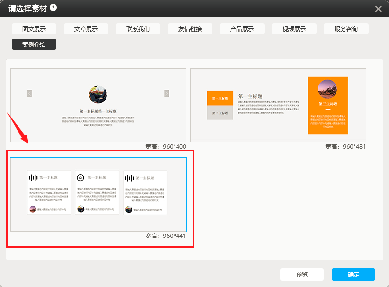 1. 在pc版建站,素材模块“案例介绍”中新增了一个样式,如图所示: