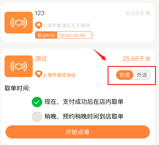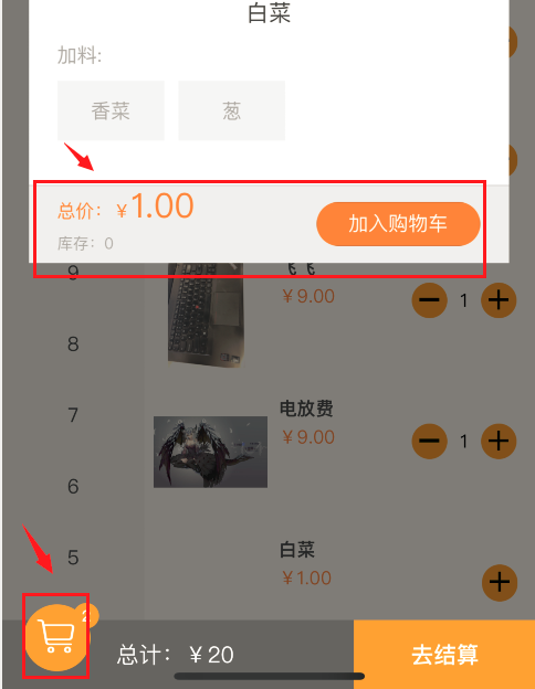 1. 在小程序,外卖点单页面,对“自提/外送”切换按钮、“加入购物车”按钮、购物车按钮进行了样式优化,如图所示:
