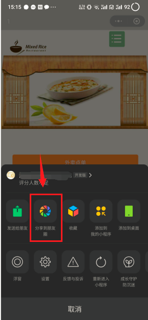 1. 在安卓手机中,现在可以分享小程序到朋友圈了(需要重新发布小程序),如图所示:
