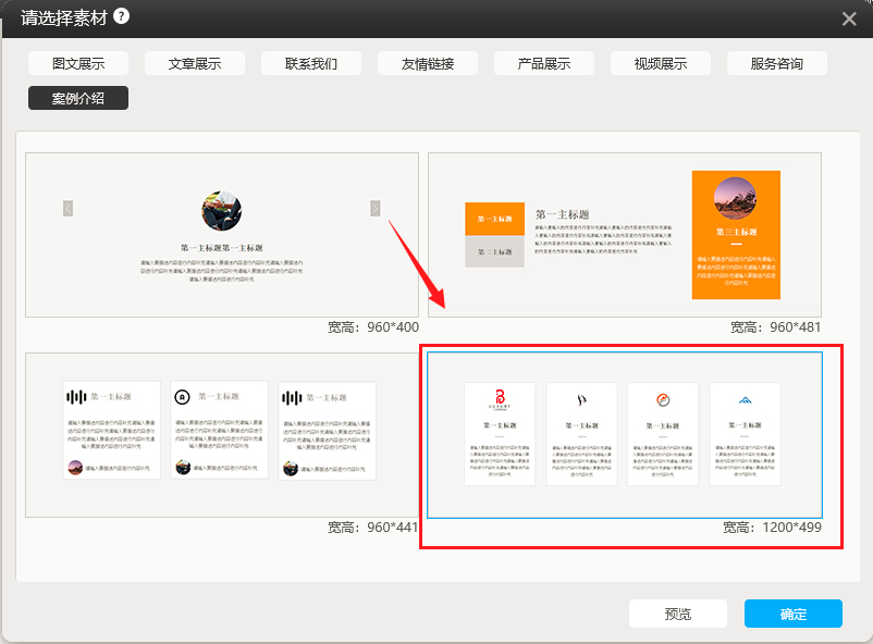 1. 在pc版建站,素材模块“案例介绍”中新增了一个样式,如图所示:
