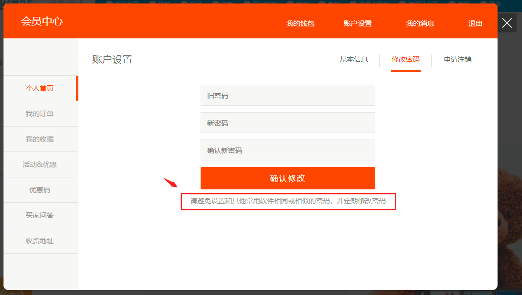 1. 在建站中,所有修改密码的界面上均添加了提示,帮助用户减少安全风险,示例较多,不一一展示: