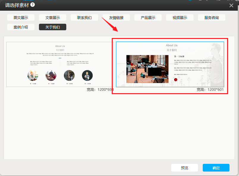 1. 在pc版建站,素材模块“关于我们”中新增了一个样式,如图所示: