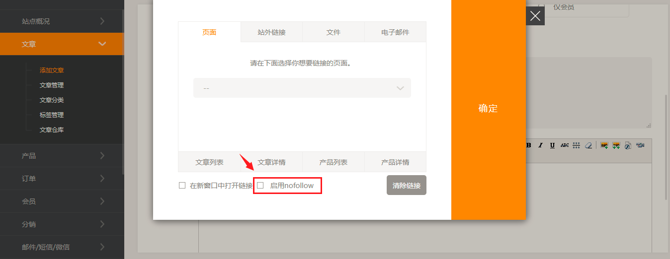 一. 文章、产品详情新增nofollow设置项(pc手机全版本)