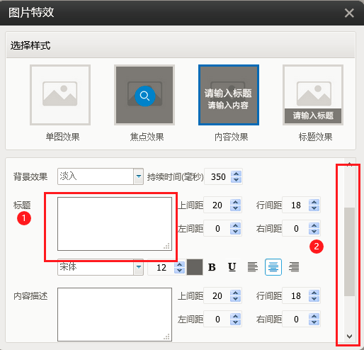 1. 在pc版建站中拖出“图片”模块,点击图片,现在标题内容的字数上限开放至100字了;当设置项内容过多时也会有滚轮了,如图所示: