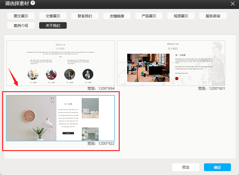 1. 在pc版建站,素材模块“关于我们”中新增了一个样式,如图所示: