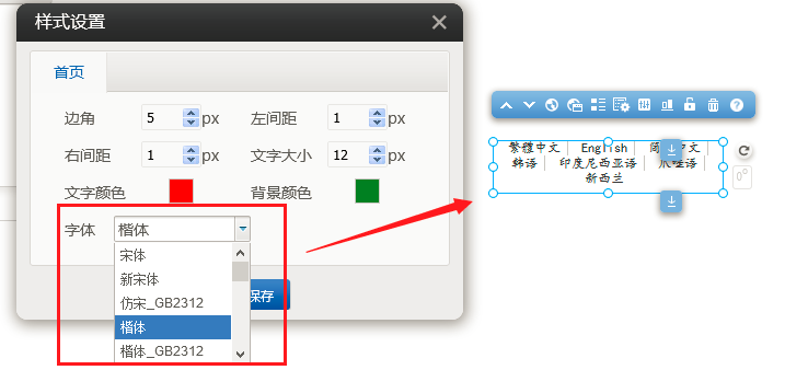 1. 在建站pc版中拖入“多语言”模块,在样式设置中新增了字体设置,如图所示: